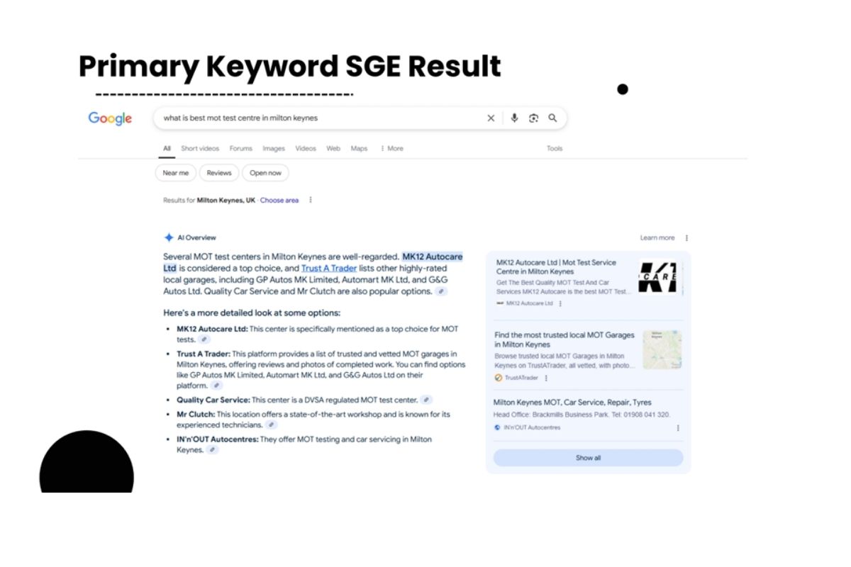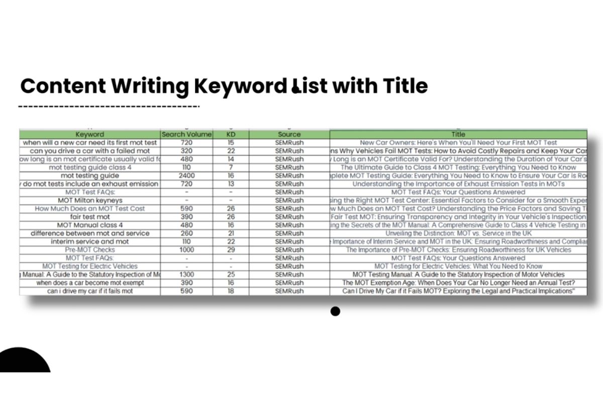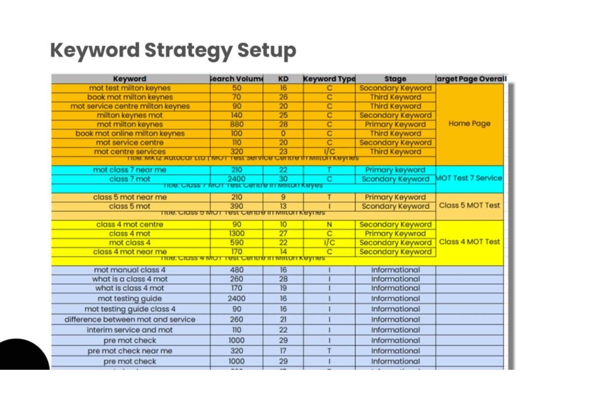 Conducted comprehensive keyword research targeting MOT tests, car servicing, and vehicle repairs for MK 12 Autocare Ltd.